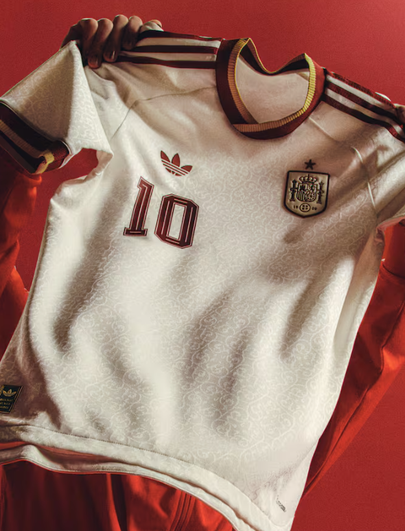 Para evitar que fuera parecida a la del pasado mundial (roja lisa), se añaden motivos gráficos sutiles, inspirados en el patrimonio artístico español, con una estética más cuidada y conceptual. También se incluyen detalles dorados y contrastes suaves que refuerzan una imagen más elegante y cultural.