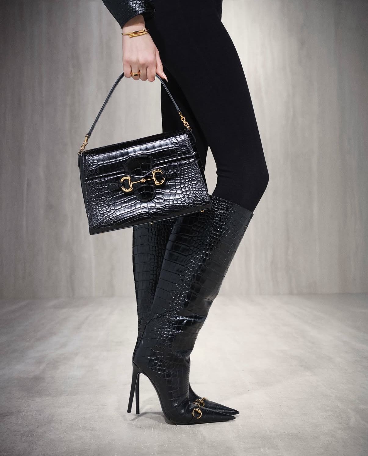 En cuanto a la moda femenina un elemento común en todos los looks han sido los brillos, presentes en vestidos, tops y pantalones, combinados con tacones en piel de cocodrilo con decoraciones en oro. Los vestidos combinan la estética seductora y la elegancia, potenciando la figura de las modelos y dejando esa sensación de prenda de lujo. Hemos visto pocas botas, pero han sido la mejor parte del calzado femenino, como estas en piel de cocodrilo y con hebilla dorada en la puntera.